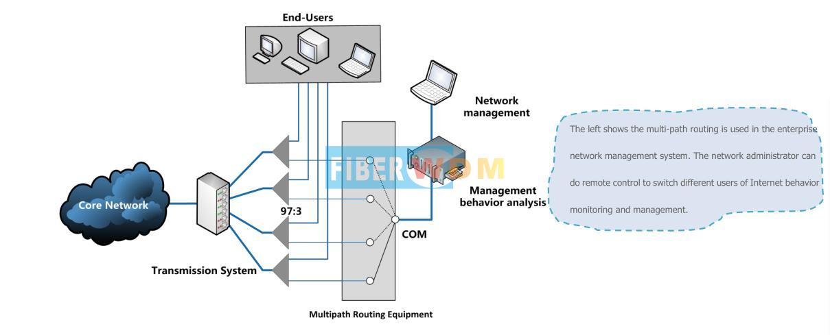 يُستخدم جهاز تبديل القنوات متعددة المسارات (مفتاح N واحد) لاختيار مسار الإشارة الضوئية والتحكم فيه. وله دورٌ هام في الاتصالات الضوئية، ويُستخدم في المراقبة متعددة النقاط لأنظمة الإرسال الضوئي، والتبديل التلقائي لمصادر/كاشفات الضوء في الشبكات المحلية، وأنظمة مراقبة المستشعرات الضوئية. كما يُمكن استخدامه لاختبار الألياف الضوئية، والمكونات الضوئية السلبية، والشبكات والكابلات الضوئية.