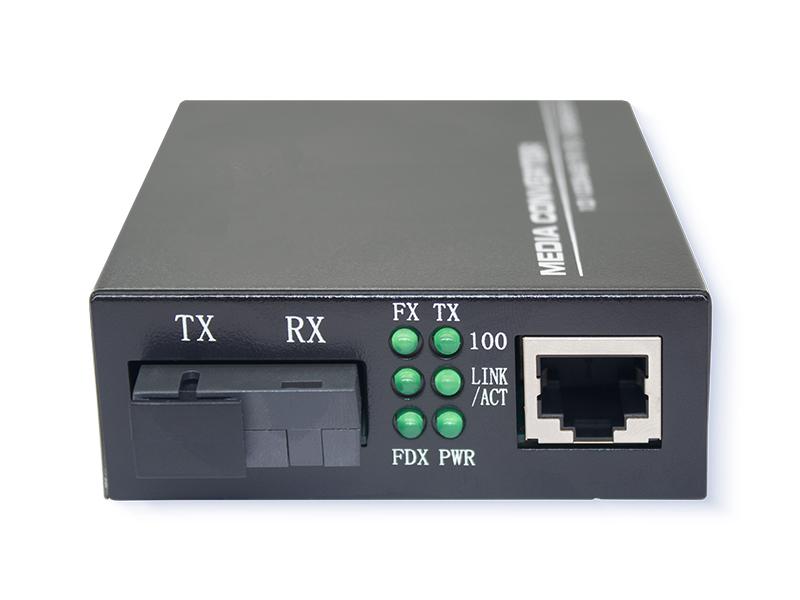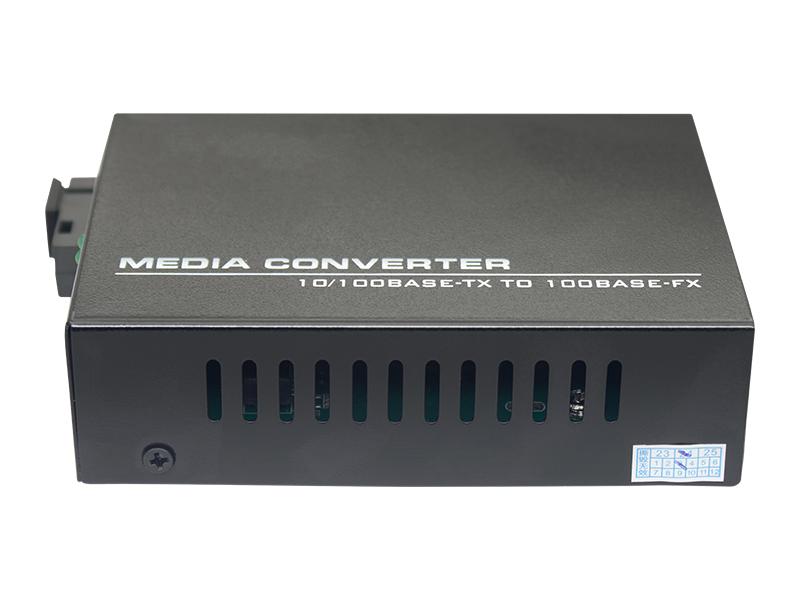 صُمم محول سلسلة 10/100M من 10/100BASE-TX إلى 100BASE-SX/LX خصيصًا لمجموعات العمل الكبيرة التي تتطلب نطاقًا تردديًا عاليًا، والتي تحتاج إلى توسيع شبكة الإيثرنت. يتميز محول 10/100M بمقبس RJ45 وموصل ألياف ضوئية SC أو SFP، لربط شبكة 10/100BASE-TX بشبكة 100BASE-SX/LX (الألياف الضوئية). في وضع الإرسال والاستقبال المتزامن (Full Duplex)، يمكن للمحول تمديد المسافة حتى 550 مترًا للألياف متعددة الأنماط، وحتى 80 كيلومترًا للألياف أحادية النمط. وهو متوافق تمامًا مع معايير IEEE 802.3u و802.3. إجراءات تركيب وتشغيل سلسلة 10/100M بسيطة وسهلة. يمكن للمستخدم مراقبة حالة التشغيل في الوقت الفعلي بسهولة عبر مجموعة من مصابيح LED الموجودة في اللوحة الأمامية.