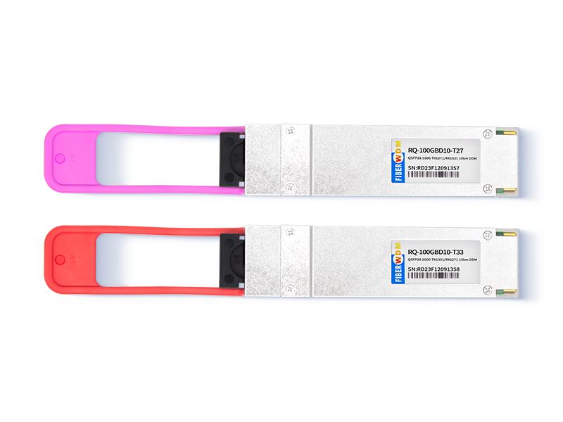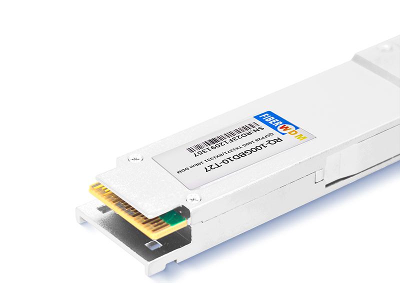 جهاز إرسال واستقبال ثنائي الاتجاه QSFP28 بسرعة 100 جيجابت/ثانية، إرسال عند 1331 نانومتر/استقبال عند 1271 نانومتر، أحادي الاتجاه LC، بمدى 10 كيلومترات، ودرجة حرارة من 0 إلى +70 درجة مئوية، مع DDM |