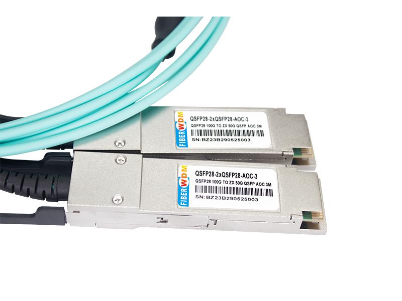 محول QSFP28 بسرعة 100 جيجابت إلى منفذي QSFP28 بسرعة 50 جيجابت من شركة AOC