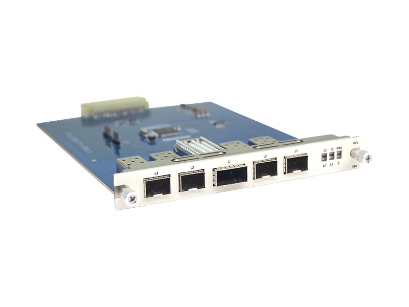 بطاقة Muxponder سعة 100 جيجابايت بطاقة مُستجيب (OEO) من 4 منافذ بسرعة 25 جيجابت/ثانية إلى 100 جيجابت/ثانية، و4 منافذ SFP28 إلى منفذ QSFP28 واحد، تُستخدم في سلسلة FW6600 وتشغل فتحة واحدة. |