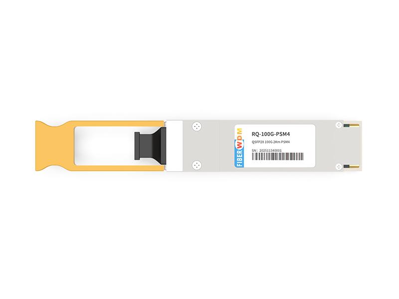 وحدة QSFP28 PSM4 هي وحدة إرسال واستقبال ضوئية رباعية القنوات، قابلة للتوصيل، تعمل بالتوازي، ومصممة لتطبيقات إيثرنت 100G. توفر هذه الوحدة الضوئية ثنائية الاتجاه 4 قنوات إرسال واستقبال مستقلة، كل منها قادرة على العمل بسرعة 26 جيجابت في الثانية، مما يوفر معدل بيانات إجمالي يصل إلى 104 جيجابت في الثانية لمسافة 2 كيلومتر باستخدام ألياف أحادية النمط. صُممت هذه الوحدات للعمل عبر أنظمة الألياف أحادية النمط باستخدام مصفوفة ليزر DFB. يمكن توصيل كابل شريطي للألياف الضوئية مزود بموصل MPO/MTP™ بمقبس وحدة QSFP28. تُعد QSFP28 PSM4 نوعًا من وحدات الإرسال والاستقبال المتوازية التي توفر كثافة منافذ أعلى وتخفيضًا في التكلفة الإجمالية للنظام.