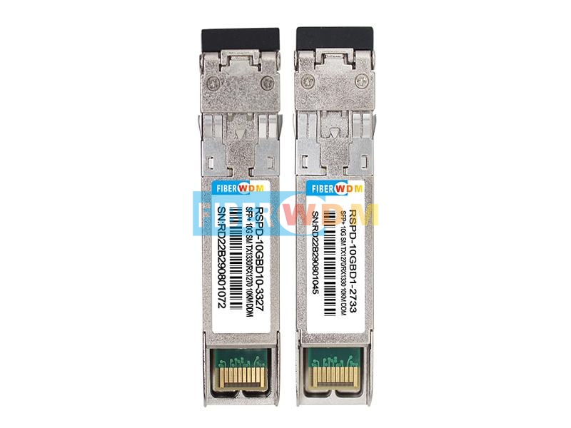 تتوافق وحدات الإرسال والاستقبال FIBERWDM' RSPD-10GBD10-2733 وRSPD-10GBD10-3327 ثنائية الاتجاه بسرعة 10 جيجابت/ثانية وبمدى 10 كيلومترات مع مواصفات اتفاقية SFP+ متعددة المصادر (MSA) الحالية. وهي متوافقة مع معايير 10GBASE-LR/LW Ethernet وSONET OC-192 / SDH و10G Fibre Channel 1200-SM-LL-L. تتوفر وظائف التشخيص الرقمي عبر واجهة تسلسلية ثنائية الأسلاك، كما هو محدد في اتفاقية SFP+ متعددة المصادر.