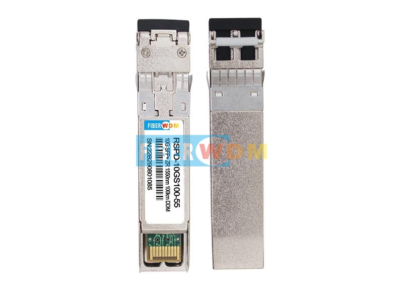 وحدة الإرسال والاستقبال الضوئية RSPD-10GS100-55/I من FIBERWDM، طراز SFP+ 10G ZR 100KM، هي وحدة صغيرة الحجم للغاية تعمل بسرعة 10 جيجابت/ثانية، ومصممة لتطبيقات الاتصالات الضوئية التسلسلية بسرعة 10 جيجابت/ثانية. تقوم هذه الوحدة بتحويل تدفق البيانات الكهربائية التسلسلية بسرعة 10 جيجابت/ثانية إلى إشارة خرج ضوئية بنفس السرعة، وتحويل إشارة الدخل الضوئية بسرعة 10 جيجابت/ثانية إلى تدفقات بيانات كهربائية تسلسلية بنفس السرعة. وتتوافق واجهة التوصيل الكهربائي عالية السرعة (10 جيجابت/ثانية) تمامًا مع مواصفات SFI.