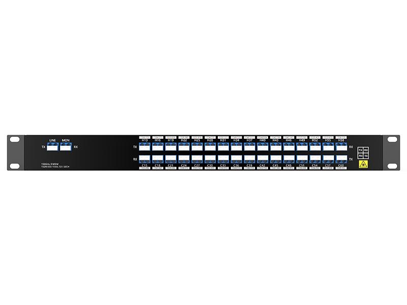 جهاز DWDM MUX/DEMUX ذو 32 قناة، يدعم نقل البيانات بسرعة 800 جيجابت في الثانية عبر ليفتين ضوئيتين، وذلك ضمن نظام نقل البيانات IDC.