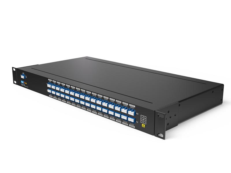 مُضاعِف/مُزيل إرسال DWDM بتردد 150 جيجاهرتز، 32 قناة (1566.314~1529.163 نانومتر)، ألياف ضوئية مزدوجة، LC/UPC، وحدة رف 1U |