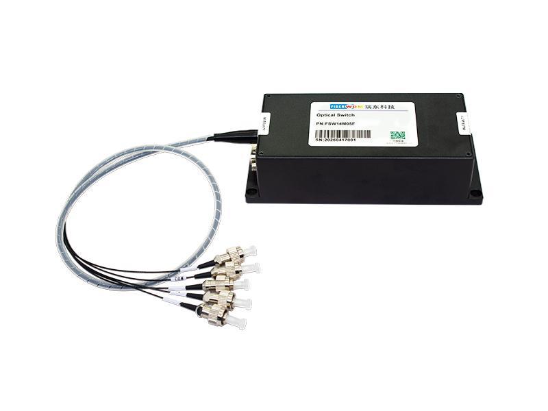 | FSW14M05F | مفتاح بصري متعدد الأنماط ذو معامل انكسار متدرج 1×4، نطاق الطول الموجي 405-640 نانومتر، 50/125 ميكرومتر (NA0.22)، ألياف 0.9 مم، طول 0.5 متر، منفذ تسلسلي FC/UPC، RS-232، وحدة 135×60×35 |