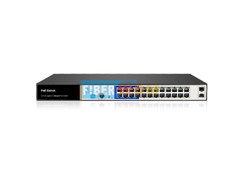 26 منفذًا 2-منفذ ضوئي، 24-منفذ كهربائي، مفتاح إدارة جيجابت بتقنية PoE