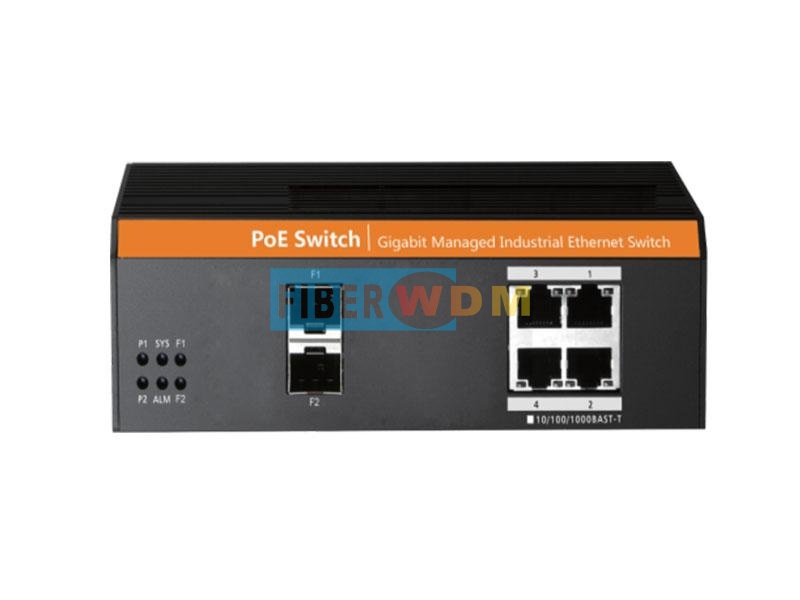مفتاح صناعي جيجابت بستة منافذ، منفذان ضوئيان، وأربعة منافذ كهربائية بتقنية PoE