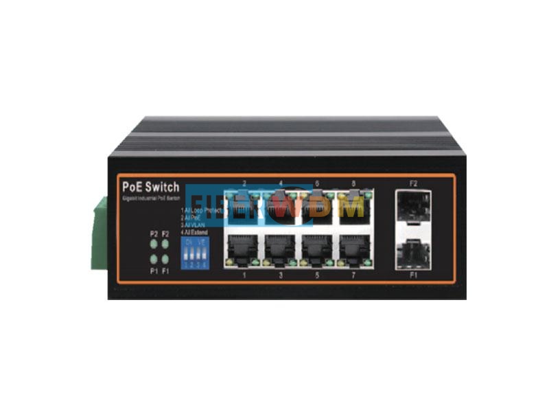 مفتاح صناعي جيجابت ذو 10 منافذ جيجابت، منفذان ضوئيان، 8 منافذ كهربائية بتقنية PoE