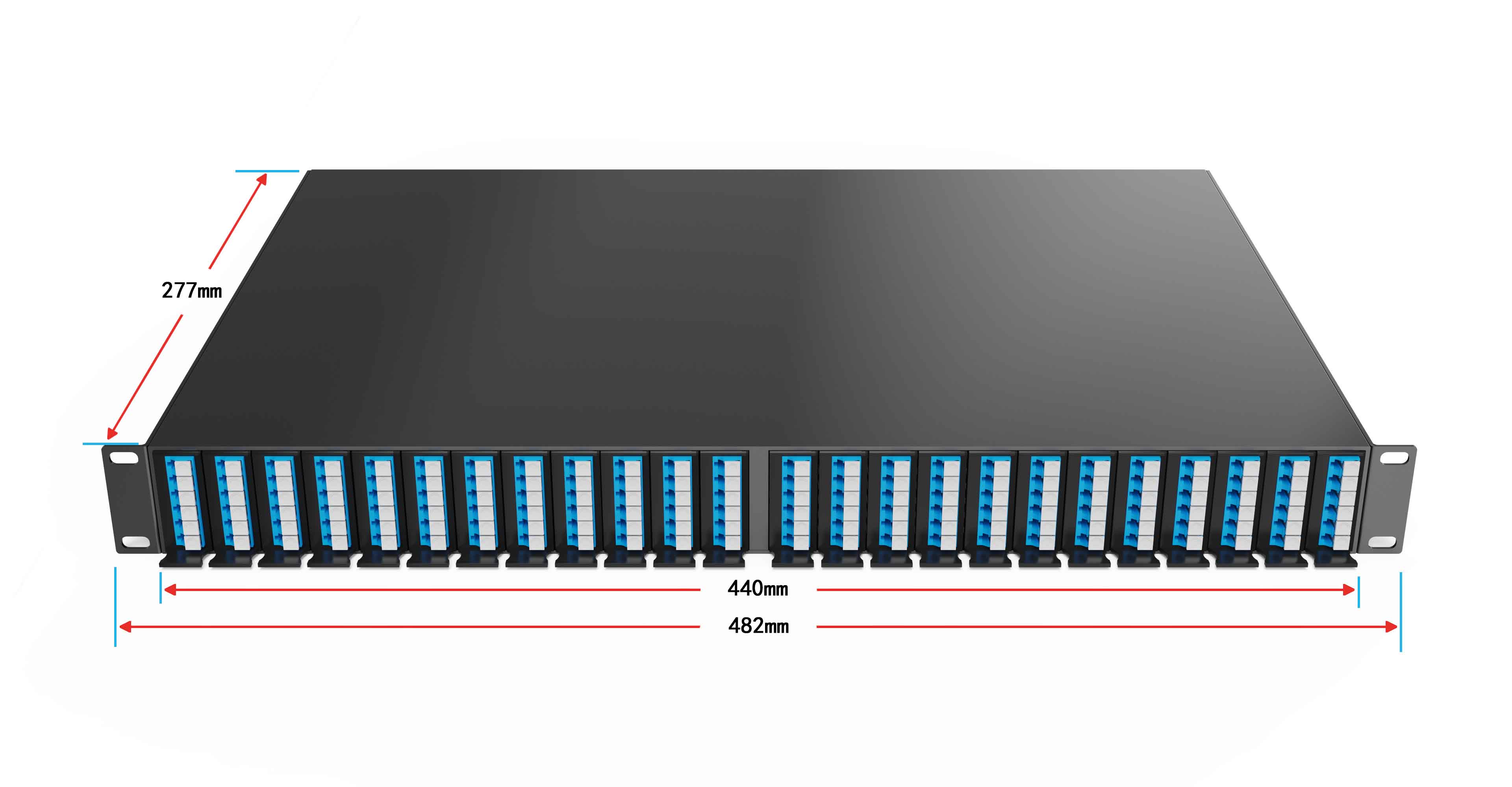 24 فتحة لحمل وحدات OTAP ذات 24 قناة، أبعاد الوحدة: 440 × 277 × 44 مم |
