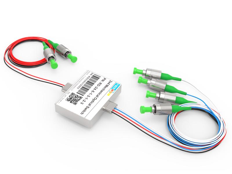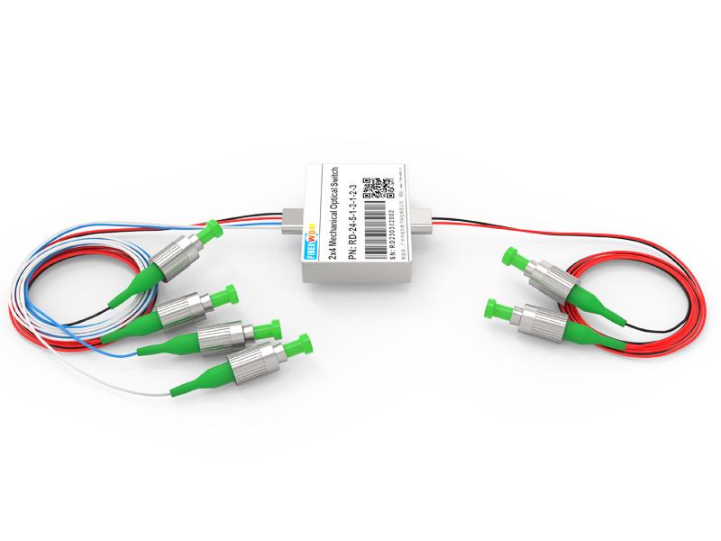 يقوم مفتاح الألياف الضوئية 2×4 بتوصيل القنوات الضوئية عن طريق توجيه أو حجب الإشارة الضوئية الواردة إلى ألياف الإخراج. ويتحقق ذلك باستخدام تصميم كهروضوئي ميكانيكي قيد براءة الاختراع، ويتم تفعيله عبر إشارة تحكم كهربائية. يحافظ الإصدار المزود بآلية تثبيت على المسار الضوئي المحدد بعد إزالة إشارة التشغيل، بينما تعود الإصدارات غير المزودة بآلية تثبيت إلى حالة الفتح أو الإغلاق تلقائيًا عند انقطاع التيار الكهربائي. يحتوي المفتاح على مستشعرات موضع كهربائية مدمجة. يقلل التصميم المتقدم الجديد القائم على مواد عالية الجودة بشكل كبير من حساسية موضع الأجزاء المتحركة، مما يوفر استقرارًا عاليًا غير مسبوق وتكلفة منخفضة لا مثيل لها.