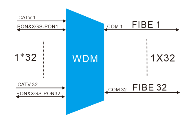 يعمل في FTTH/FTTX، ويعمل في نظام PON على 1310/1490 و1270/1577 نانومتر، ويتم توصيل إشارة CATV عبر نفس الألياف باستخدام 1550 نانومتر.