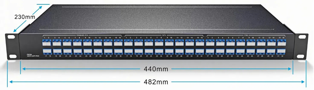 32 قناة FWDM TX CATV 1550nm RX PON 1310/1490nm و XGS-PON 1270/1577nm LC/UPC 1U Rack