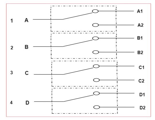 (5) A، B، C، D، A1، A2 إلى D1 إلى D2: أطراف الإدخال والإخراج للألياف البصرية (ثنائية الاتجاه).