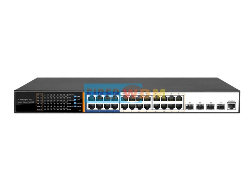 24 منفذ RJ45 بسرعة 10/100/1000 ميجابت في الثانية + 4 منافذ SFP جيجابت