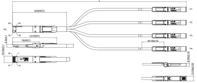 محول رقمي تناظري 400GQSFP-DD إلى 4xSFP-DD، 30AWG، 2.0 متر، PVC، أسود. |