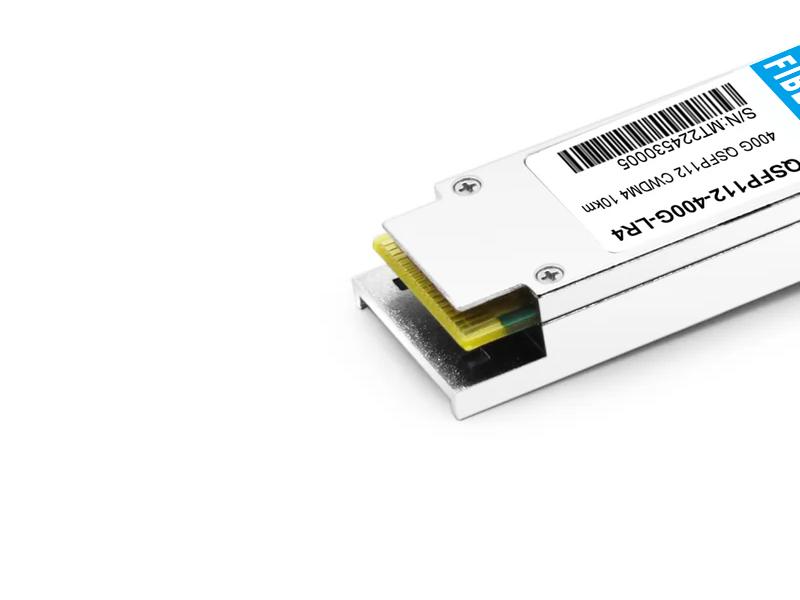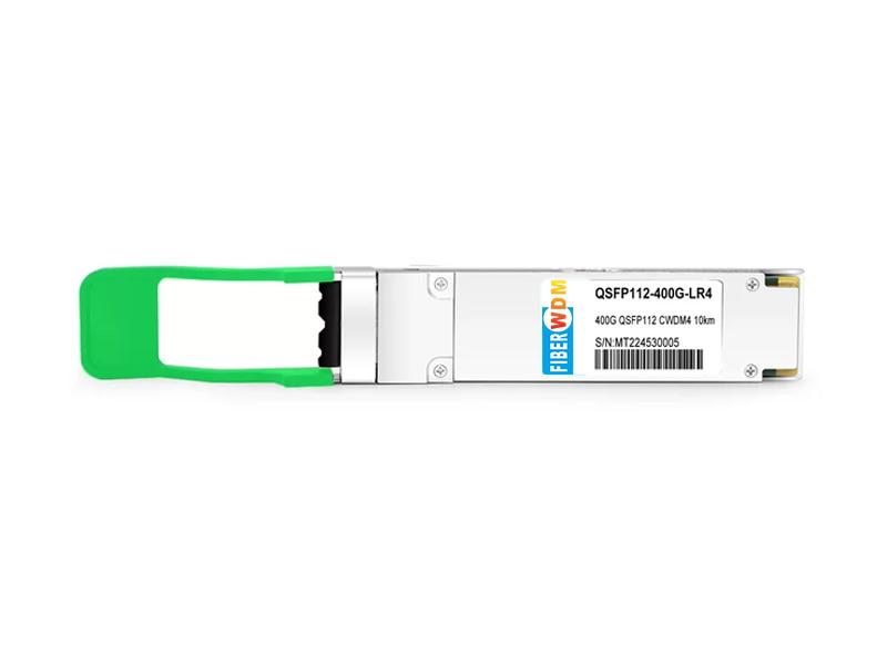 صُممت وحدة الإرسال والاستقبال QSFP112 400GBASE LR4 لوصلات إيثرنت بسرعة 400 جيجابت/ثانية عبر ألياف أحادية النمط لمسافة 10 كيلومترات. تحتوي الوحدة على 4 قنوات متوازية بطول موجي مركزي CWDM، تعمل كل منها بسرعة 106.25 جيجابت/ثانية. في مسار الاستقبال، تُستخدم 4 ثنائيات ضوئية ومصفوفة TIA رباعية القنوات، بالإضافة إلى مُعيدات توقيت PAM4.