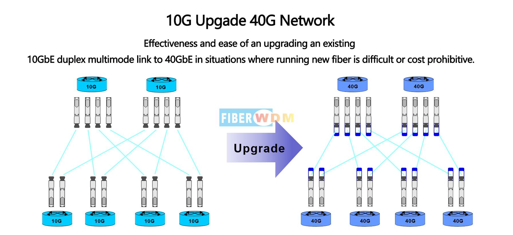 يقوم جهاز الإرسال والاستقبال QSFP-40G-SRBD داخليًا بتقسيم واجهة XLPPI 4x10G إلى قناتين كهربائيتين بسرعة 20 جيجابت/ثانية، حيث يتم الإرسال والاستقبال بصريًا عبر ليف بصري أحادي الاتجاه من نوع LC باستخدام بصريات ثنائية الاتجاه. ينتج عن ذلك عرض نطاق ترددي إجمالي يبلغ 40 جيجابت/ثانية في كابل LC مزدوج. يتيح ذلك إعادة استخدام بنية كابلات LC المزدوجة المثبتة لتطبيقات 40GbE.