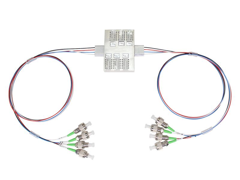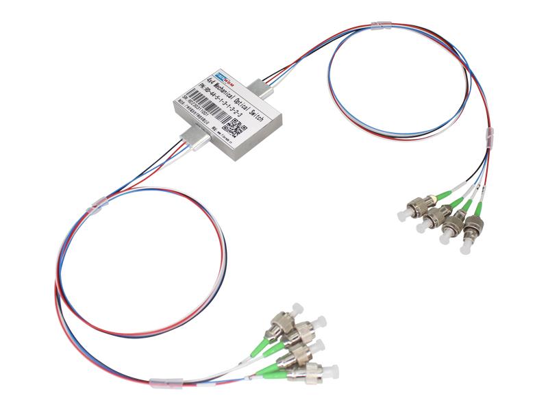 يقوم مفتاح الألياف الضوئية الميكانيكي 4x4 بتوصيل القنوات الضوئية عن طريق توجيه أو حجب الإشارة الضوئية الواردة إلى ألياف الإخراج. ويتحقق ذلك باستخدام تصميم كهروضوئي ميكانيكي قيد براءة الاختراع، ويتم تفعيله عبر إشارة تحكم كهربائية. يحافظ الإصدار المزود بآلية تثبيت على المسار الضوئي المحدد بعد إزالة إشارة التشغيل، بينما تعود الإصدارات غير المزودة بآلية تثبيت إلى حالة الفتح أو الإغلاق تلقائيًا عند انقطاع التيار الكهربائي. يحتوي المفتاح على مستشعرات كهربائية مدمجة لتحديد الموضع. يقلل التصميم المتقدم الجديد القائم على مواد عالية الجودة بشكل كبير من حساسية موضع الأجزاء المتحركة، مما يوفر استقرارًا عاليًا غير مسبوق وتكلفة منخفضة لا مثيل لها.