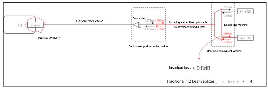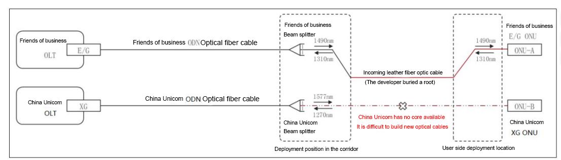 كما هو موضح في الشكل أعلاه، فإن العديد من المجتمعات ذات المعايير الوطنية هي عبارة عن أنابيب ألياف ضوئية مخفية تدخل المنزل، ومن الصعب إعادة سحب الكابلات، ولا يمكن توسيع الاندماج المباشر للكابلات الضوئية والأسلاك الجلدية من غرفة الكمبيوتر الخاصة بالشبكة السكنية إلى منزل المستخدم، ويجب إعادة نشر الكابلات الضوئية والأسلاك الجلدية.