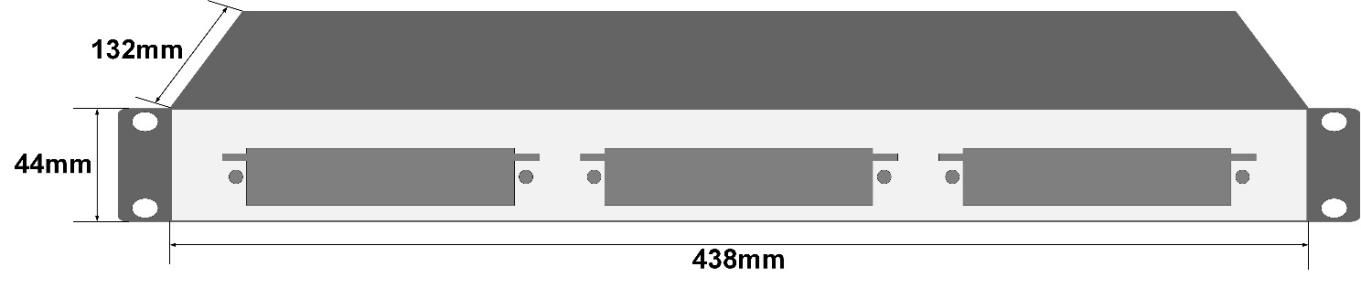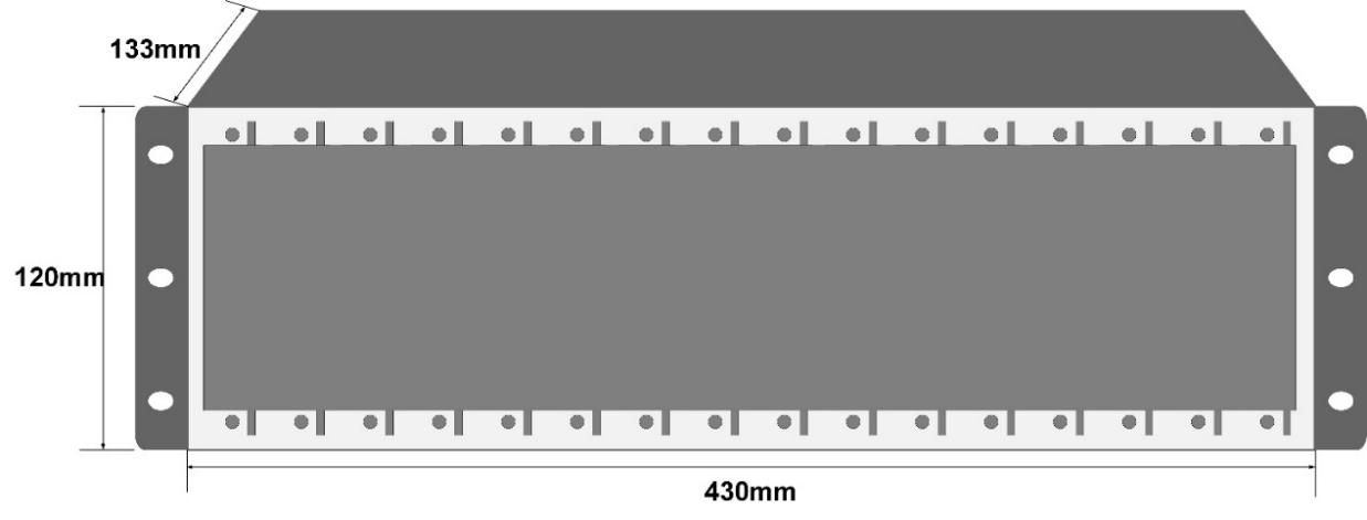 الحجم: 3U، 120 مم (ارتفاع)، 430 مم (عرض ×)، × 133 مم (عمق)