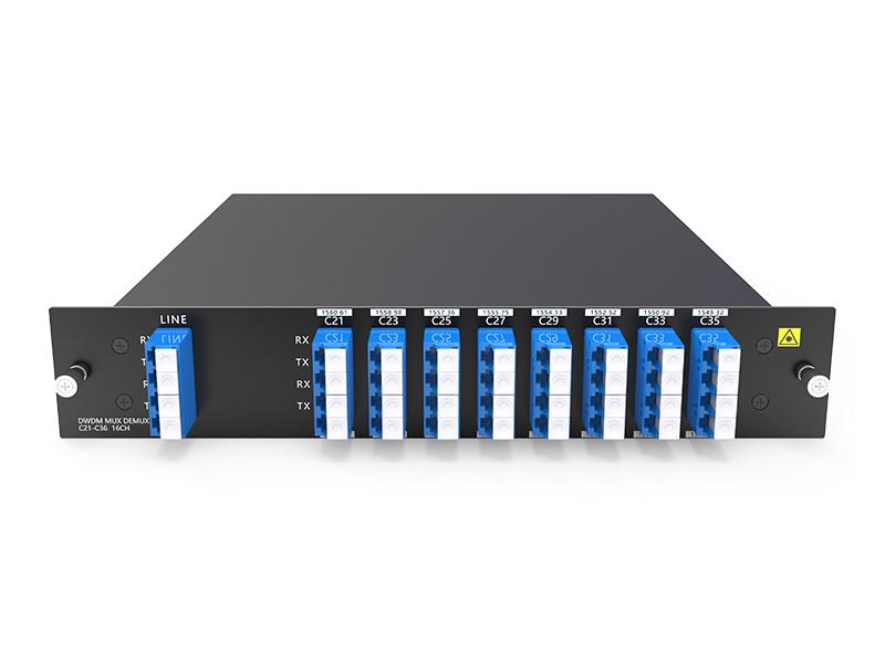 وحدة DWDM ذات 16 قناة هي وحدة سلبية بالكامل من نوع LGX، ويمكن تركيبها في رف 1U ذي فتحتين؛ ويبلغ فقد الإدخال فيها أقل من 3.5 ديسيبل. وعند دمجها مع مضخمات DWDM وجهاز DCM، يمكن لنظام نقل DWDM ذي 8 قنوات دعم الإرسال لمسافات طويلة.