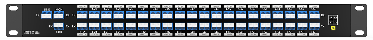 مُضاعِف/مُفكِّك إشارات DWDM ثنائي الألياف 40 قناة C21-C60، مع 1310 نانومتر ومنفذ مراقبة، LC/UPC، وحدة رف 1U