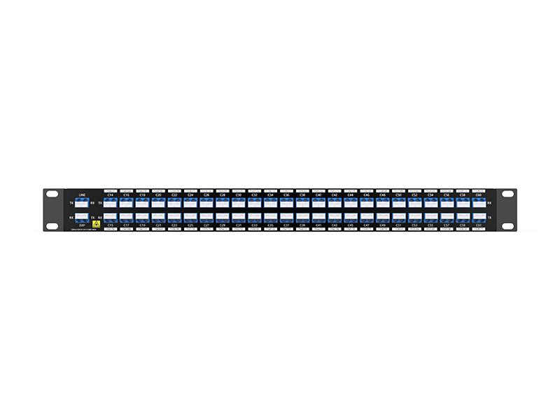 مُضاعِف/مُفكِّك إشارات DWDM بتردد 50 جيجاهرتز، 48 قناة (C14-C61)، مع منفذ توسعة (EXP) للتوسيع من H14 إلى H61، ألياف ضوئية مزدوجة، LC/UPC، وحدة رف 1U |