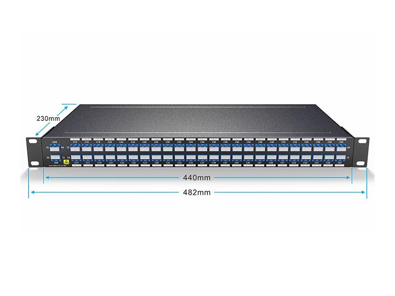 جهاز DWDM MUX DEMUX ذو 48 قناة، يدعم 40 قناة مختلفة في اثنين من الألياف الضوئية للإرسال من نقطة إلى نقطة.