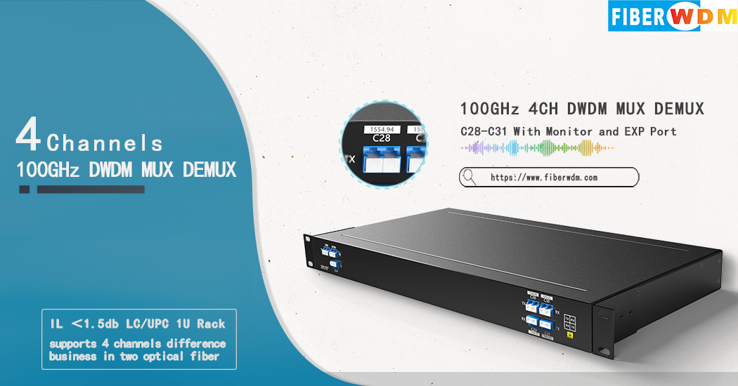 مُضاعِف/مُفكِّك إشارة DWDM ثنائي الألياف رباعي القنوات C28-C31، منفذ مراقبة وتوسيع، LC/UPC، وحدة رف 1U