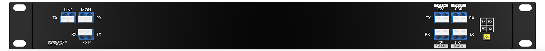 مُضاعِف/مُفكِّك DWDM رباعي القنوات (C28-C31) مع منفذ EXP، ومنفذ مراقبة، وألياف ضوئية مزدوجة، وLC/UPC، ووحدة رف 1U |