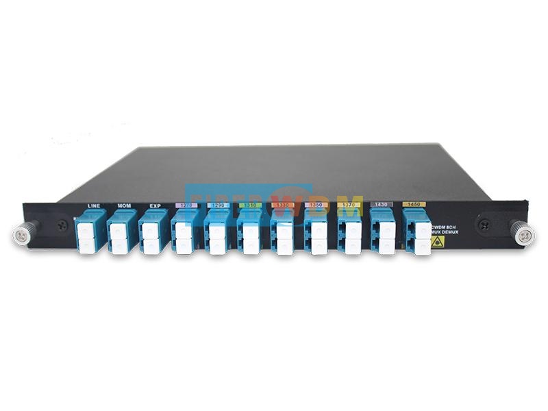8 قنوات 1270-1450 نانومتر (مع تخطي 1390 و1410 نانومتر)، مع منفذ مراقبة وتوسعة، وLC/UPC، وألياف ضوئية مزدوجة، ومُضاعِف/مُفَكِّك إشارة CWDM عالي الكثافة، ووحدة توصيل LGX Box