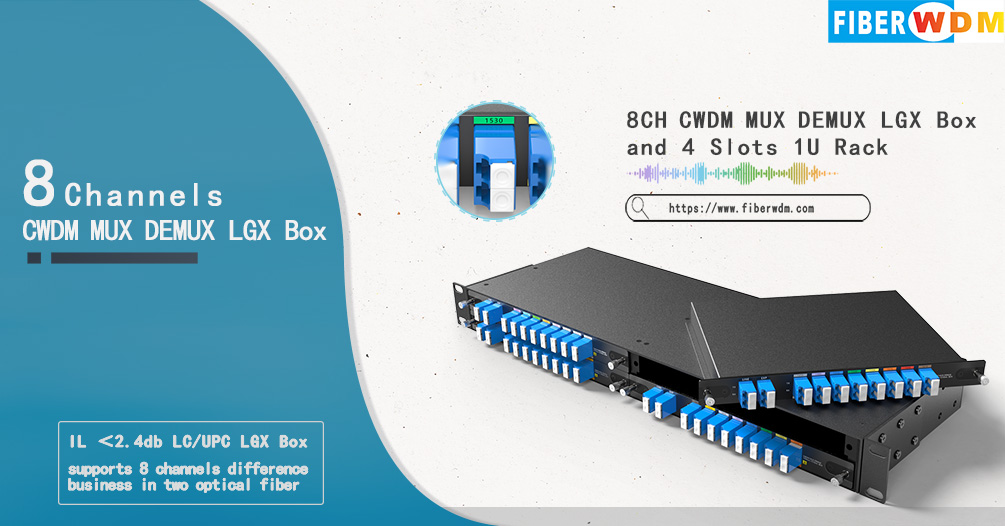 تم تصميم جهاز CWDM MUX DEMUX ذو 8 قنوات بواسطة FIBERWDM، بطول موجي من 1470 نانومتر إلى 1610 نانومتر، وهو جهاز CWDM سلبي وصندوق LGX قابل للتوصيل، ويمكن توصيله برف 1U ذي 4 فتحات، ويدعم 8 قنوات مختلفة في ليفين بصريين للإرسال من نقطة إلى نقطة.