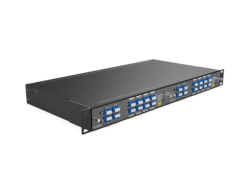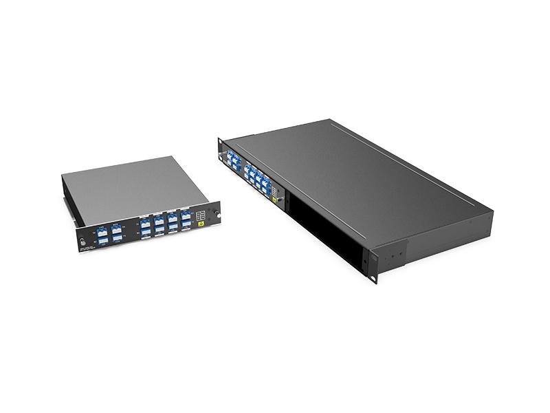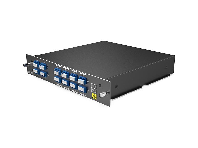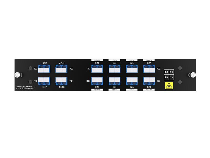 وحدة DWDM ذات 8 قنوات هي وحدة سلبية تمامًا من نوع LGX، ويمكن تركيبها في رف 1U ذي فتحتين؛ ويبلغ فقد الإدخال فيها أقل من 2.4 ديسيبل. وعند دمجها مع مضخمات DWDM وجهاز DCM، يدعم نظام نقل DWDM ذو 8 قنوات الإرسال لمسافات طويلة.