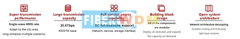 في سيناريوهات الربط البيني لمراكز البيانات ذات السعة الكبيرة أو المسافات الطويلة داخل المدينة، يمكن استخدام منصة نقل البيانات بتقنية تقسيم الموجة لإنشاء شبكة نقل بيانات فائقة السرعة تصل إلى 100 جيجابت في الثانية، مما يضمن توفير موارد كافية من عرض النطاق الترددي. ويمكن نشر الرفوف واللوحات الفردية حسب الطلب، والتوسع وفقًا للاحتياجات، مما يقلل التكلفة الأولية، ويحمي استثمارات العملاء، ويتميز بقابلية التوسع والفعالية من حيث التكلفة.