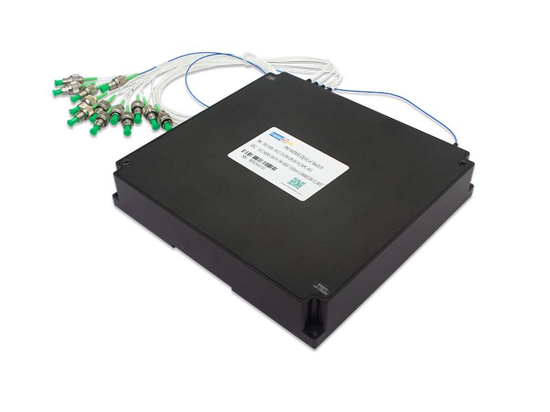 مفتاح ألياف ضوئية MEMS 1X12 PM (حافظ للاستقطاب) 1550 نانومتر 0.9 مم 0.5 متر، ألياف PM FC/APC، وحدة 158×150×29 نانومتر