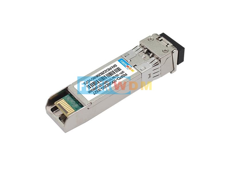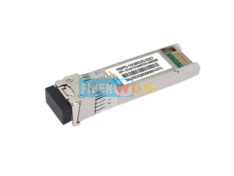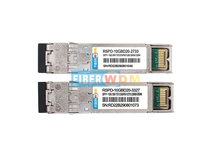 FIBERWDM' RSPD-10GBD20-2733 &RSPD-10GBD20-3327 أجهزة إرسال واستقبال SFP+ بسرعة 10 جيجابت/ثانية وبمدى 20 كيلومترًا تتوافق هذه الوحدات مع مواصفات اتفاقية SFP+ متعددة المصادر (MSA) الحالية. كما تتوافق مع معايير إيثرنت 10GBASE-LR/LW، وSONET OC-192 / SDH، وقناة الألياف 10G 1200-SM-LL-L. تتوفر وظائف التشخيص الرقمي عبر واجهة تسلسلية ثنائية الأسلاك، كما هو محدد في اتفاقية SFP+ متعددة المصادر.