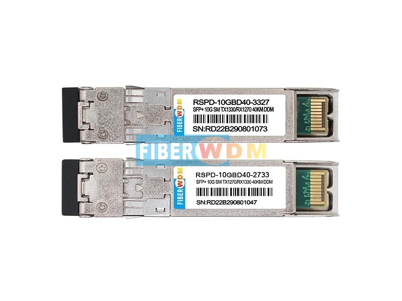 FIBERWDM' RSPD-10GBD40-2733 و RSPD-10GBD40-3327 أجهزة إرسال واستقبال SFP+ ثنائية الاتجاه 10 جيجابت/ثانية بمدى 40 كم تتوافق هذه الوحدات مع مواصفات اتفاقية SFP+ متعددة المصادر (MSA) الحالية. كما تتوافق مع معايير إيثرنت 10GBASE-LR/LW، وSONET OC-192 / SDH، وقناة الألياف 10G 1200-SM-LL-L. تتوفر وظائف التشخيص الرقمي عبر واجهة تسلسلية ثنائية الأسلاك، كما هو محدد في اتفاقية SFP+ متعددة المصادر.