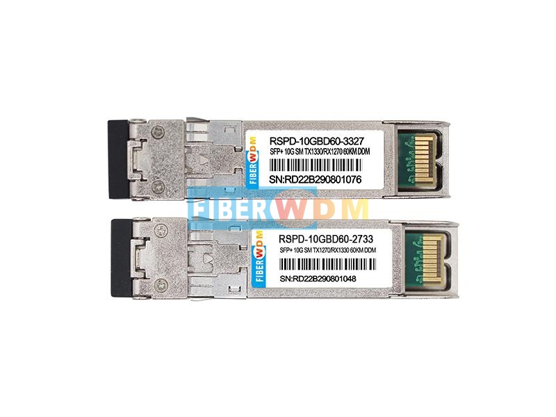 FIBERWDM' RSPD-10GBD60-2733 & RSPD-10GBD60-3327 أجهزة إرسال واستقبال SFP+ بسرعة 10 جيجابت/ثانية وبمدى 60 كيلومترًا تتوافق هذه الوحدات مع مواصفات اتفاقية SFP+ متعددة المصادر (MSA) الحالية. كما تتوافق مع معايير إيثرنت 10GBASE-LR/LW، وSONET OC-192 / SDH، وقناة الألياف 10G 1200-SM-LL-L. تتوفر وظائف التشخيص الرقمي عبر واجهة تسلسلية ثنائية الأسلاك، كما هو محدد في اتفاقية SFP+ متعددة المصادر.