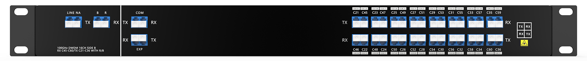 مُضاعِف/مُزيل مُضاعِف DWDM ذو 16 قناة، استقبال C45 إلى C60/ إرسال C21 إلى C36 مع الجانب الأيمن/الأيسر B
