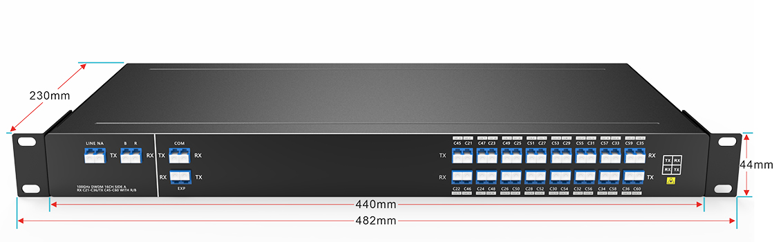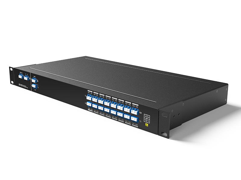 مُضاعِف/مُزيل إرسال DWDM أحادي الألياف 16 قناة (32 موجة)، مع مُرشِّح R/B، وLC/UPC، ووحدة رف 1U
