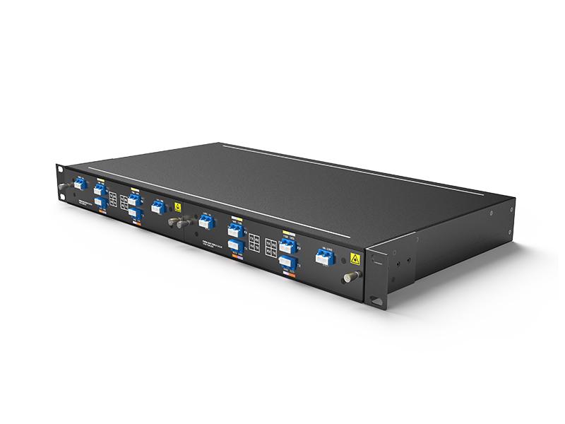 كابل ألياف ضوئية أحادي القناة، قناتان، 4 موجات، 1470-1530 نانومتر، CWDM OADM، غرب وشرق، LC/UPC، وحدة توصيل FMU، وفتحتان في رف 1U