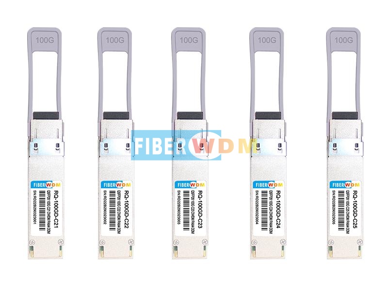 صُممت وحدة الإرسال والاستقبال الضوئية QSFP28 100G DWDM PAM4 LC من سلسلة RQ-100GD-CXX للاستخدام في اتصالات البيانات الضوئية ثنائية الاتجاه. تعمل هذه الوحدة مع الألياف الضوئية أحادية النمط، وبمعدل بيانات 100 جيجابت في الثانية عند الطول الموجي الاسمي لتقنية DWDM من 1528.77 نانومتر إلى 1565.50 نانومتر، وفقًا لمواصفات الاتحاد الدولي للاتصالات (ITU-T). تستطيع هذه الوحدة تحويل 4 قنوات من بيانات الإدخال الكهربائية (NRZ) بسرعة 25 جيجابت في الثانية إلى قناة واحدة من الإشارة الضوئية (PAM4) بسرعة 100 جيجابت في الثانية، كما تستطيع تحويل قناة واحدة من الإشارة الضوئية (PAM4) بسرعة 100 جيجابت في الثانية إلى 4 قنوات من بيانات الإخراج الكهربائية (NRZ) بسرعة 25 جيجابت في الثانية. يتوافق تصميم الواجهة الكهربائية للوحدة مع معيار OIF CEI-28G-VSR ومعيار QSFP28 MSA. تم تصميمه ليتم نشره في معدات شبكات DWDM في الوصول الحضري والشبكة الأساسية